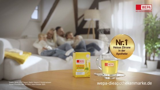 Zum Jahresstart 2026 setzt WEPA Apothekenbedarf ein starkes Markensignal: Mit einer reichweitenstarken TV-Kampagne rückt „WEPA – Die Apothekenmarke“ bundesweit in den Fokus. Im Mittelpunkt steht die WEPA Heiße Zitrone, unterstützt durch ein aufmerksamkeitsstarkes Gewinnspiel für Apotheken und Endkunden. Die Kampagne wird auf zwölf TV-Sendern ausgestrahlt und sorgt mit über 1.400 Schaltungen für hohe Sichtbarkeit und zusätzliche Abverkaufsimpulse in der Apotheke vor Ort.
